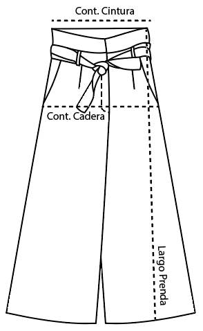 - Pantalón ancho tiro alto con pinzas en la parte delantera y lazo desmontable en la cintura .