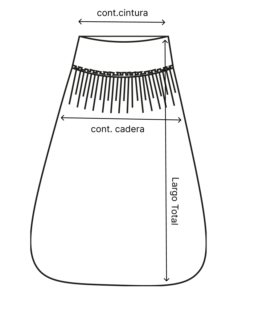 - Pollera globo con cierre en la parte trasera de la cintura y elastico en la parte de abajo de la falda