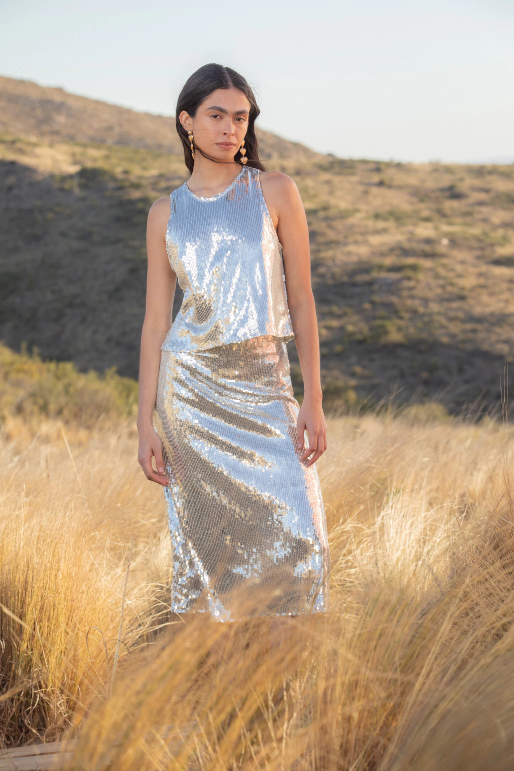 - Pollera de lentejuelas con detalle de cierre invisible. (No es translucida) tiene forro.
