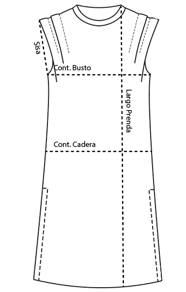 - Túnica larga con tajos en los costados, cuello redondo, musculosa con tablas en los hombros, viene con lazo de la. misma tela pero se puede usar con sin.