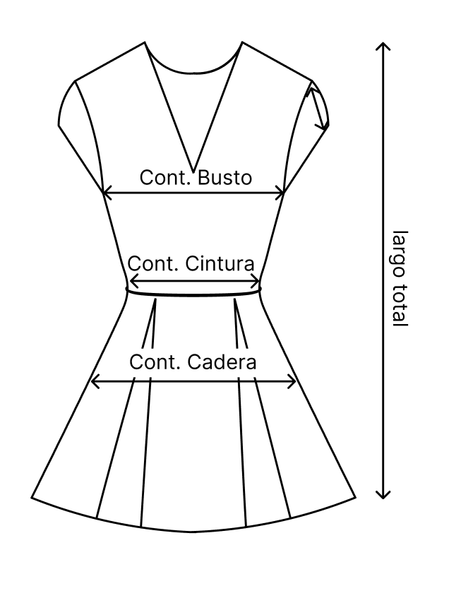 - Vestido corto con vuelo, escote en v con manga corta y cierre en la parte de la espalda.