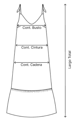 - Vestido largo con volado ancho en ruedo y breteles para atar.